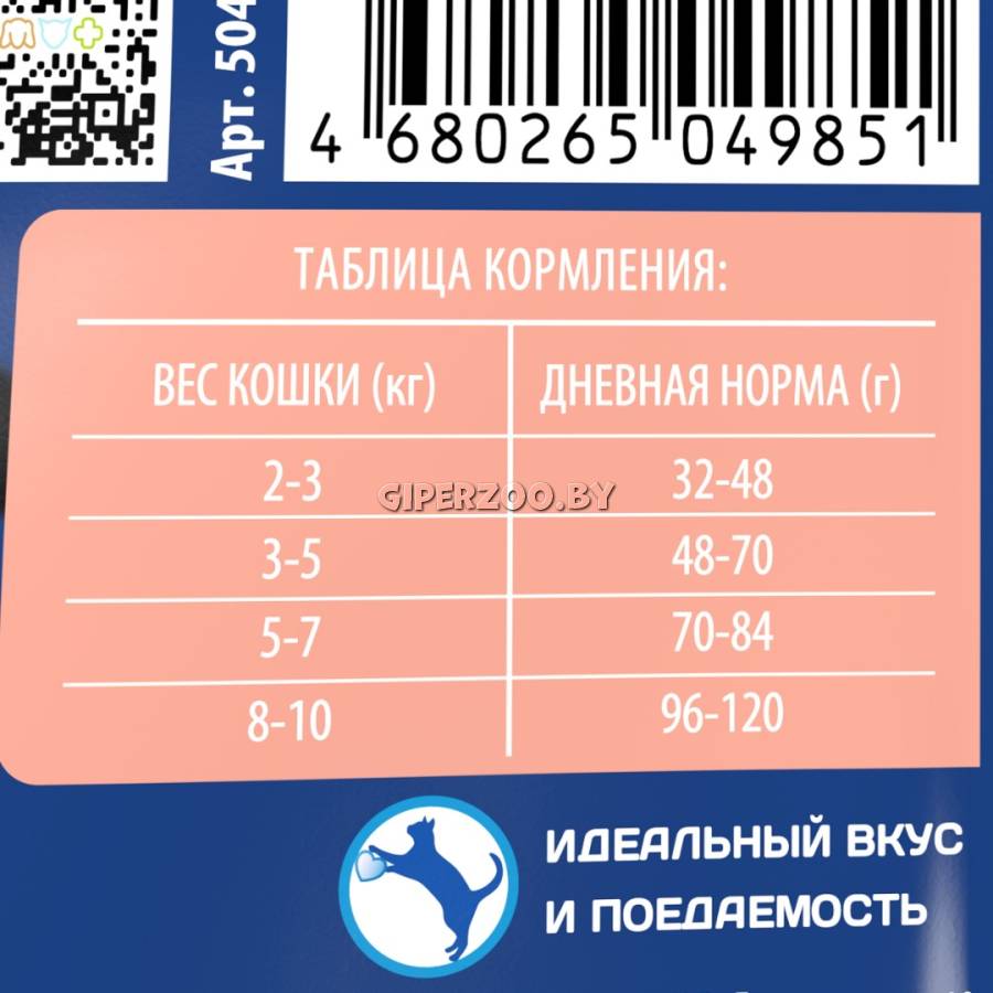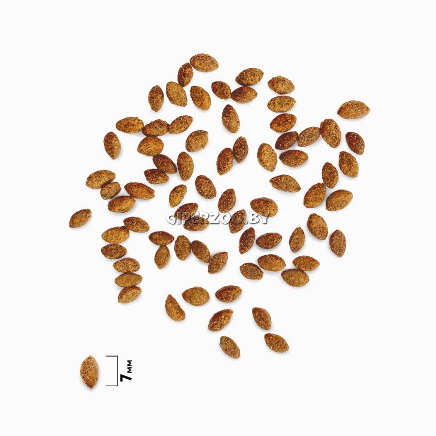 Дегидрированное мясо 37 % (лосось, курица), кукуруза, глютен кукурузный, рис, жир куриный, свекольная пульпа, гидролизованная и дегидратированная печень 3 %, дрожжи (источник маннанолигосахаридов), витаминно-минеральный комплекс, таурин, топинамбур (источник инулина – фруктоолигосахаридов), клюква, DL-Метионин, антиокислитель, экстракт юкки Шидигера.