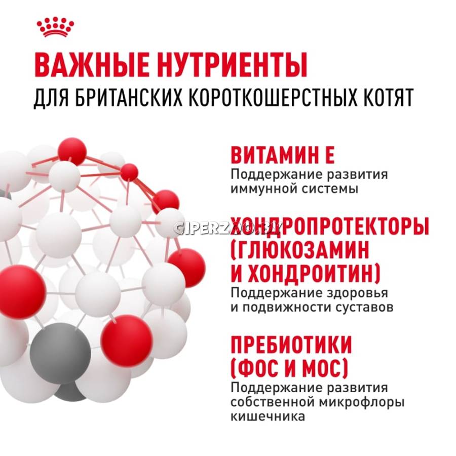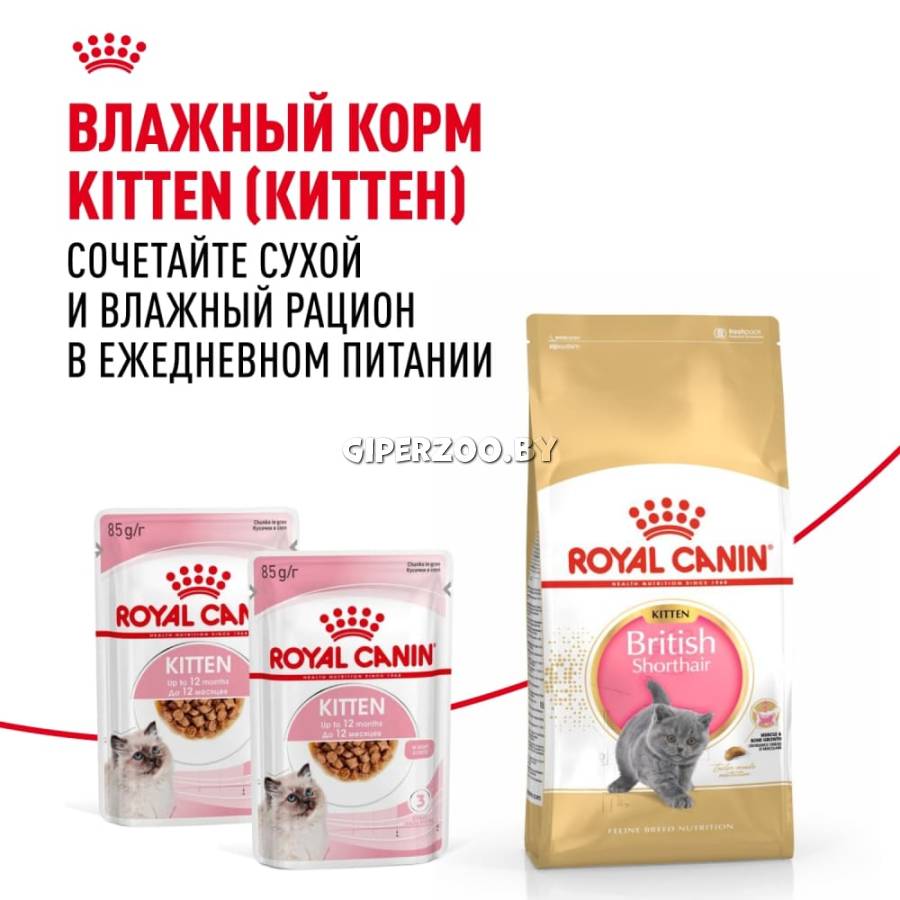 Формула продукта ROYAL CANIN® British Shorthair Kitten разработана с учетом особых породных потребностей. Предоставив котенку лучшее питание в период роста, Вы обеспечите ему здоровье и долголетие в будущем.
