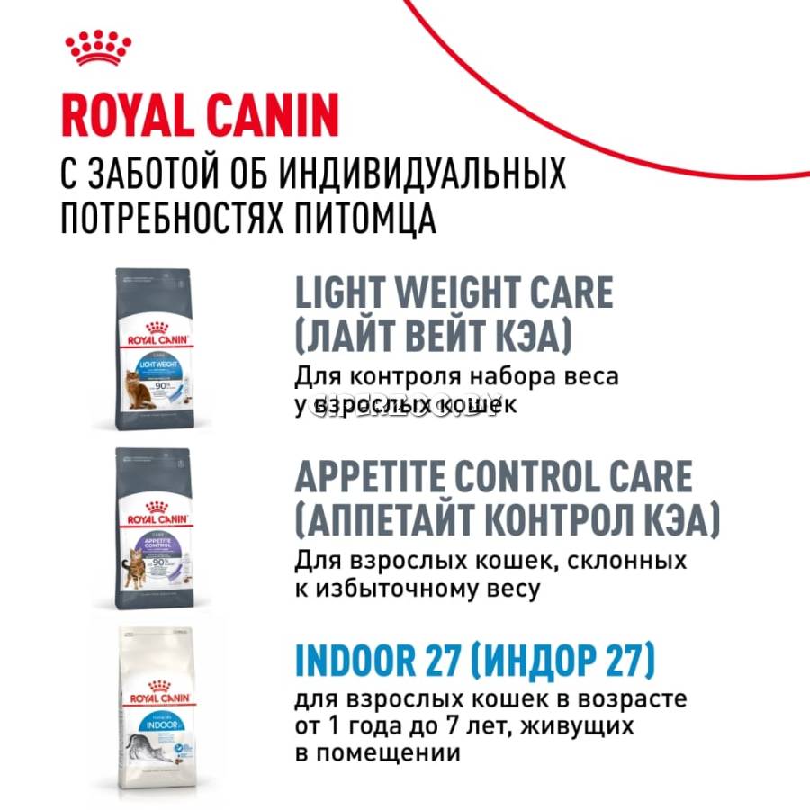 Полнорационный сухой корм для кошек в возрасте от 1 до 7 лет, живущих в помещении и склонных к перееданию. Особенности корма: - Переедание и контроль веса. Кошки, живущие в помещении, менее активны и часто склонны к перееданию. INDOOR APPETITE CONTROL помогает таким кошкам регулировать аппетит естественным образом, благодаря балансу белков и клетчатки. Продукт способствует поддержанию идеального веса. - Выведение волосяных комочков. Стимулирует кишечный транзит и облегчает выведение волосяных комочков благодаря сочетанию неферментируемой и ферментируемой клетчатки. - Ослабление запаха фекалий. Высокоперевариваемые белки, адаптированное содержание клетчатки и особые питательные вещества способствуют нормальному пищеварению и ослабляют запах фекалий.
