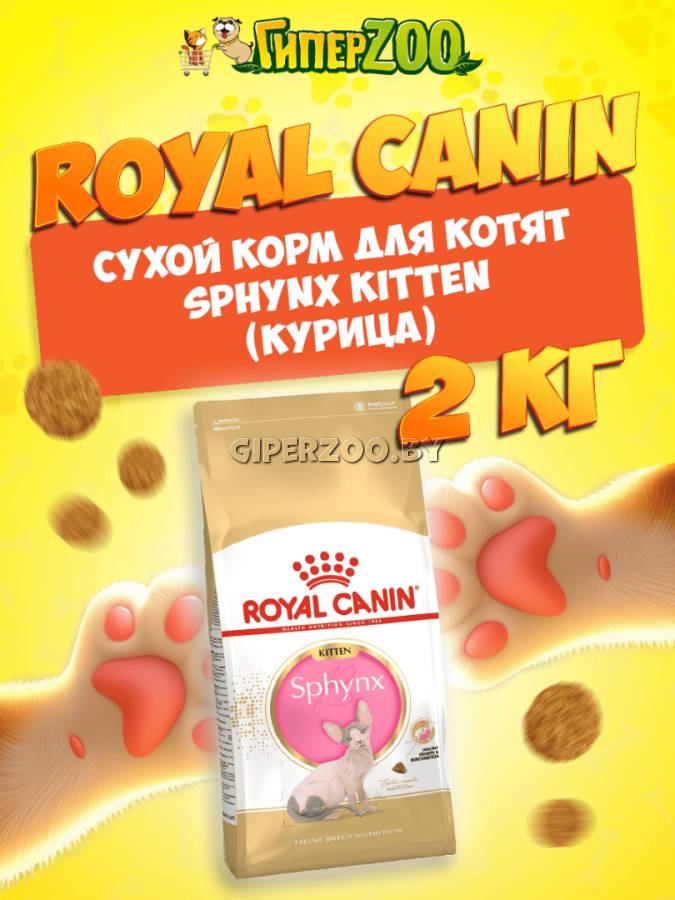 Royal Canin Sphynx Kitten (Роял Канин Сфинкс Киттен), 2 кг — сухой полнорационный корм разработанный специально для котят породы сфинкс до 12 месяцев.