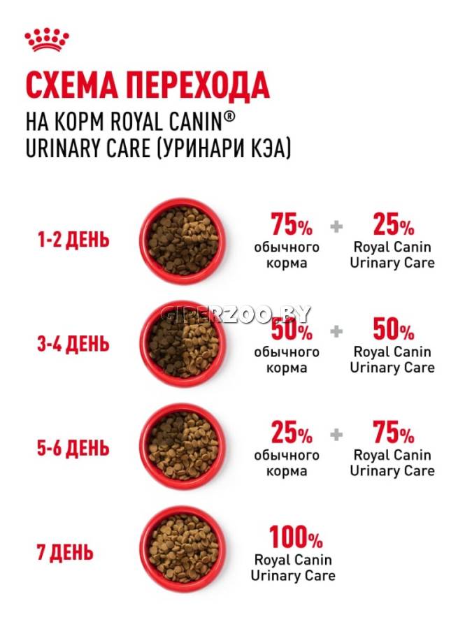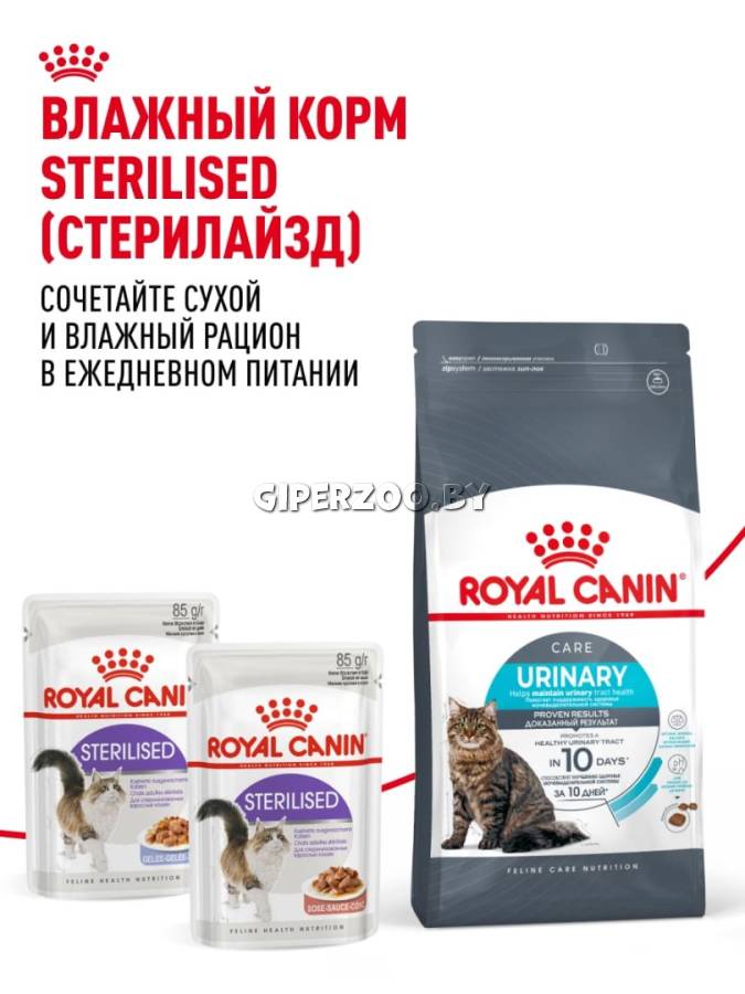 ROYAL CANIN Urinary Care — уникальная формула, которая снижает концентрацию мочи, регулирует баланс минеральных веществ и поддерживает низкий уровень pH мочи, что способствует профилактики камней струвитного типа. В ходе 10-дневного исследования было доказано, что продукт ROYAL CANIN Urinary Care влияет на здоровье нижних мочевыводящих путей в два раза эффективнее, чем обычный корм.