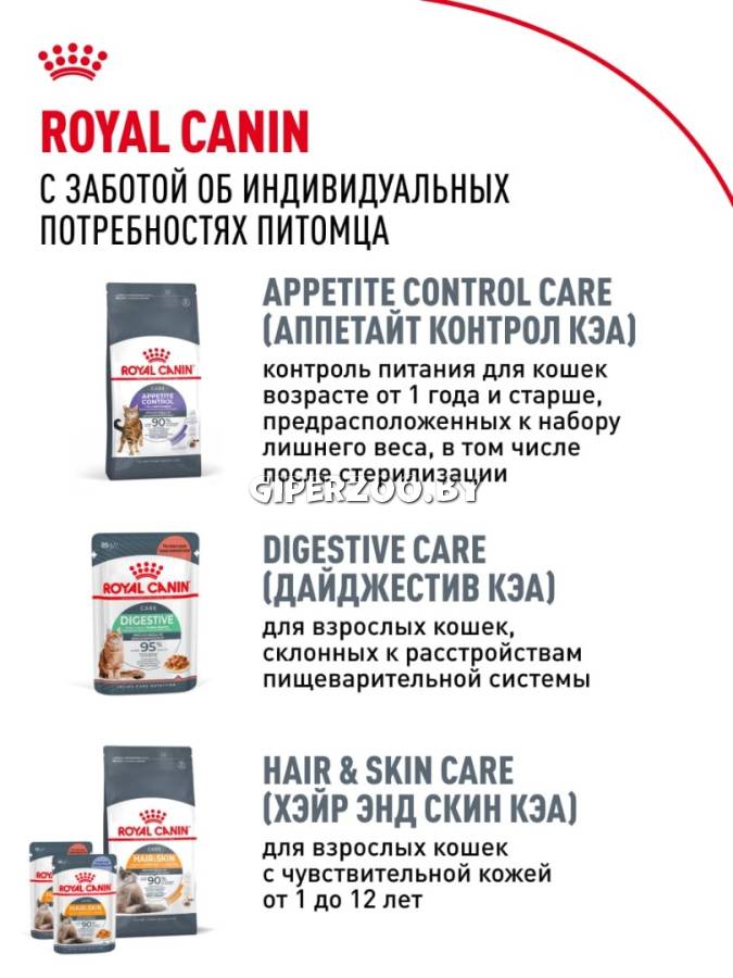 ROYAL CANIN Urinary Care выпускается также и в форме кусочков в соусе, что позволяет учесть индивидуальные предпочтения каждой кошки. Если Вы выбрали для своей кошки смешанное питание, следуйте рекомендованным нормам кормления, чтобы сочетать сухой и влажный продукт в пропорциях, оптимальных для здоровья животного.
