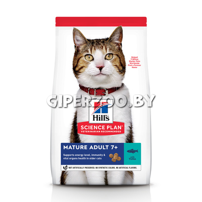 высококачественный сухой корм для пожилых кошек и котов старше 7 лет HILL'S SCIENCE PLAN Mature Adult 7+ - это сбалансированное питание, помогающее бороться с признаками старения у взрослой кошки старше 7 лет. З апатентованная формула корма разработана с использованием высококачественных ингредиентов, помогающих поддерживать функцию мозга пожилых кошек, уровень активности, заинтересованность в общении и общий уровень жизненной энергии.
