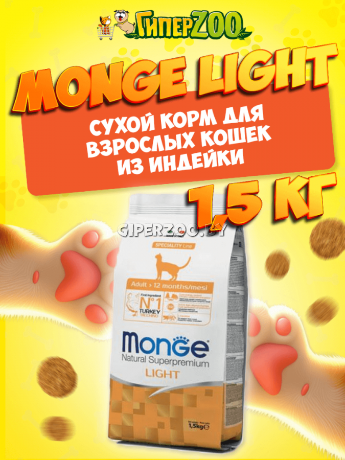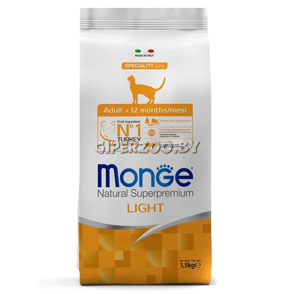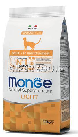 Monge (Монж) Cat Speciality Light сухой низкокалорийный корм из мяса индейки для взрослых кошек и котов 1,5 кг.