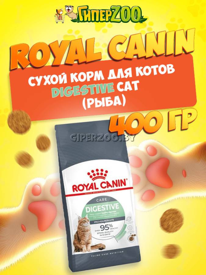 Корм сухой полнорационный для взрослых кошек Royal Canin Digestive Care или как часто называют Digestive Care Рыбные колечки - поддерживает здоровье органов пищеварения благодаря специально разработанному комплексу нутриентов и особым характеристикам крокет.