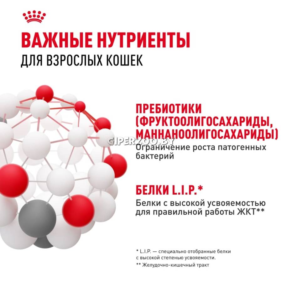ухудшения консистенции фекалий, что также может свидетельствовать о проблемах пищеварения. - Точно сбалансированная формула ROYAL CANIN® Digestive Care поддерживает здоровье органов пищеварения благодаря специально разработанному комплексу нутриентов и особым характеристикам крокет. ROYAL CANIN® Digestive Care содержит высокоусвояемые белки (L.I.P.), легко переваривающиеся, что положительно влияет на здоровье кошки в целом.