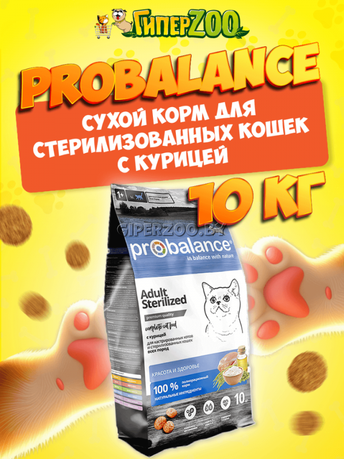 ProBalance Cat Sterilized - полнорационный сбалансированный сухой корм премиум класса для кастрированных и стерилизованных кошек. Специальный состав корма ProBalance® способствует стимуляции потребления воды животным, тем самым увеличивая объем мочи и снижая риск образования камней в мочевыводящих путях. Баланс питательных веществ и калорий корма помогает поддерживать вес животного в оптимальном уровне, а L-карнитин способствует сжиганию жиров в организме. Фито-композиция из целебных трав «Fitocare® for cats»- запатентованный сбор из целебных трав, разработанный практикующими ветеринарными специалистами. Обладает общеукрепляющим и тонизирующим свойствами, стимулирует иммунитет и способствует долголетию вашей кошки.