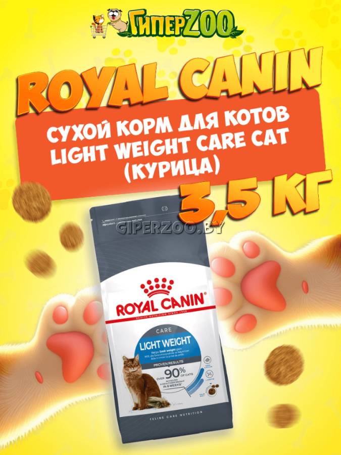 Оптимальные физическая кондиция и мышечная масса – факторы, во многом определяющие состояние здоровья кошек. Точно сбалансированная формула ROYAL CANIN® Light Weight Care поможет поддерживать оптимальный вес животного. Продукт содержит специально разработанный комплекс различных видов клетчатки, в том числе семя подорожника, увеличивающий объем корма в желудке, надолго обеспечивающий чувство сытости и за счет этого снижающий спонтанное потребление корма. ROYAL CANIN® Light Weight Care обогащен L-карнитином, поддерживающим нормальный метаболизм жиров. Высокое содержание белков в сочетании с пониженным содержанием жиров позволяет сохранить мышечную массу без набора веса. Состав: изолят растительных белков*, дегидратированные белки животного происхождения (птица), растительная клетчатка, пшеница, рис, мука из зерновых культур, гидролизат белков животного происхождения (вкусоароматические добавки), животные жиры, минеральные вещества, дрожжи, рыбий жир, оболочки и семена подорожника (0,5 %), соевое масло.