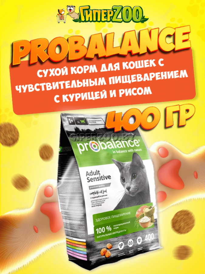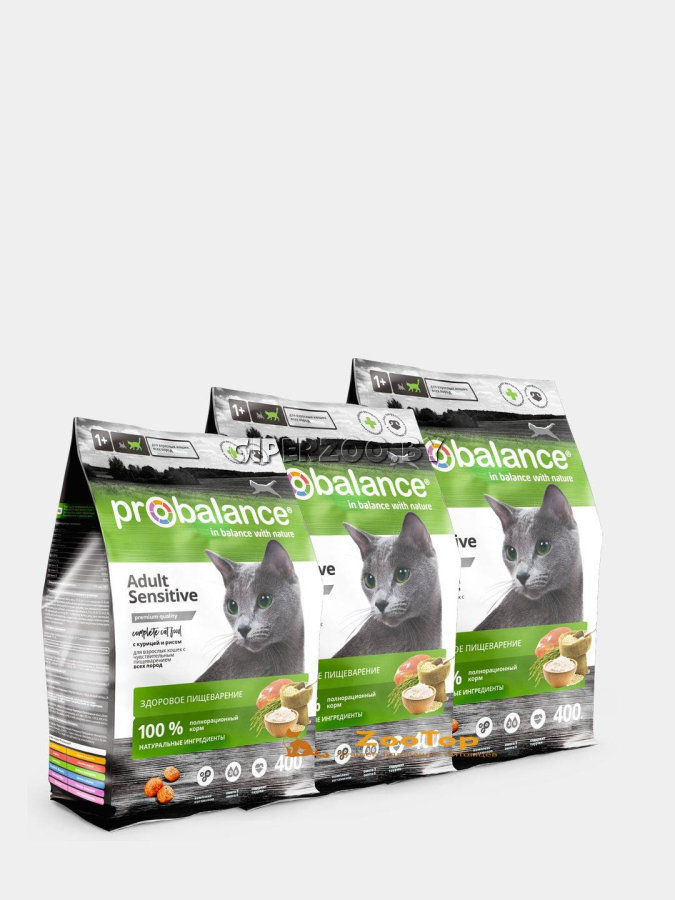 Сухой корм для кошек ProBalance Cat Sensitive Adult, 400 гр - полнорационный сбалансированный сухой корм премиум класса для взрослых кошек всех пород с чувствительным пищеварением, с курицей и рисом. ProBalance® Sensitive c курицей и рисом предназначен для ежедневного кормления взрослых кошек всех пород с чувствительным пищеварением.