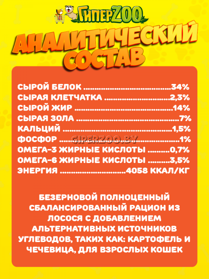 Богат омега-3 и омега-6 жирными кислотами, которые позволяют предупредить воспалительные процессы и сохранить здоровье кожи и блеск шерсти питомца.