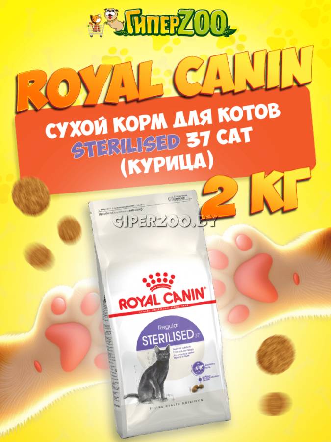 Информация об ингредиентах и нутриентном составе на сайте является справочной. Вся информация о продукте представлена непосредственно на упаковке.Сухой корм для котов Royal Canin Sterilised 37 (Роял Канин Стерилайзд), 2 кг - после стерилизации необходимо пересмотреть рацион кошки с учетом изменившихся потребностей в энергии. ROYAL CANIN® Sterilised 37 помогает снизить риск появления избыточного веса, благодаря умеренному содержанию жиров, при соблюдении рекомендуемых норм кормления.Тщательно выверенное количество минеральных веществ в составе ROYAL CANIN® Sterilised 37 способствует поддержанию здоровья мочевыделительной системы кошки, а повышенный уровень белка помогает сохранять оптимальную мышечную массу.