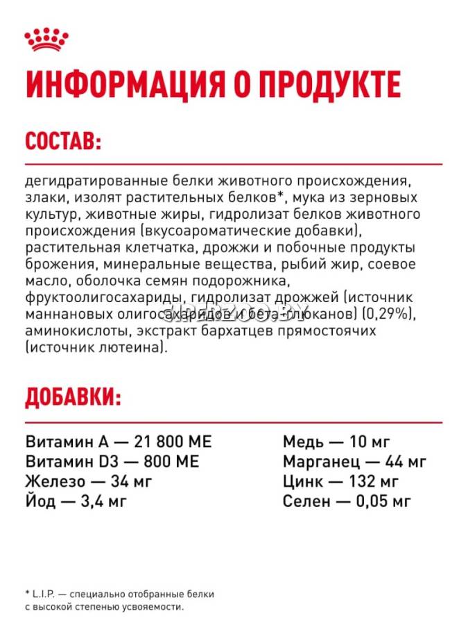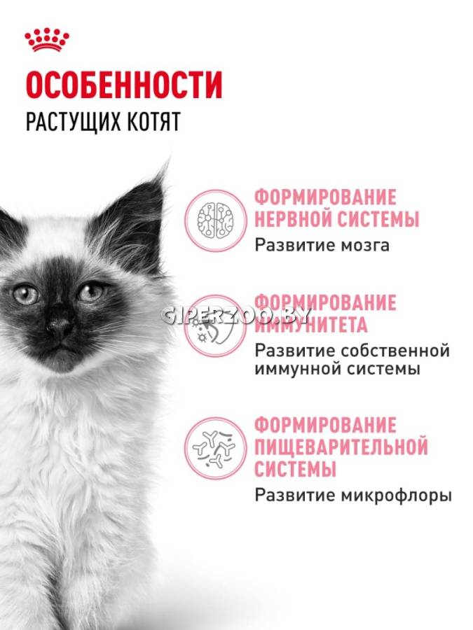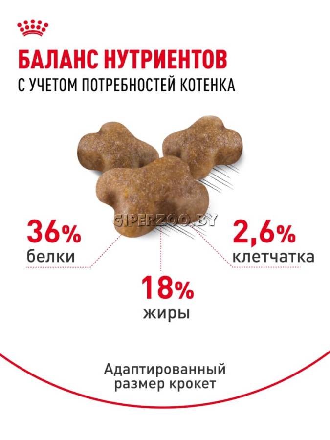 Корм ROYAL CANIN® Kitten предназначен для котят в возрасте до 12 месяцев и обладает повышенной усвояемостью благодаря высококачественным (усваиваются на 90%) белкам L.I.P.