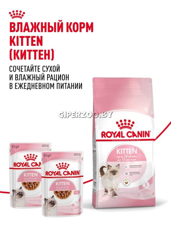 Корм ROYAL CANIN® Kitten предназначен для котят в возрасте до 12 месяцев и обладает повышенной усвояемостью благодаря высококачественным (усваиваются на 90%) белкам L.I.P.
