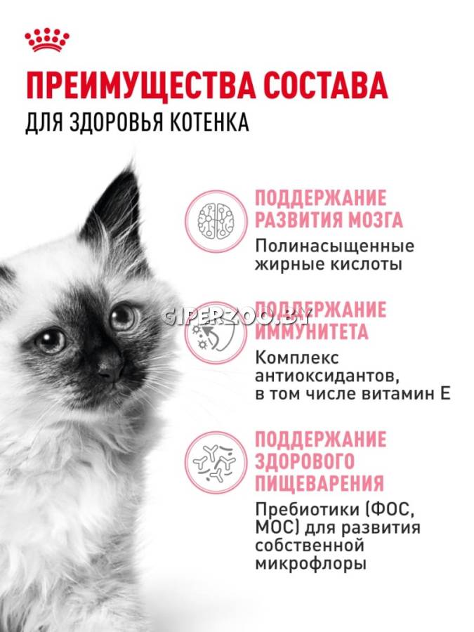 Сухой корм для котят Royal Canin Kitten (Роял Канин Китен), 300 гр - подойдет для котят независимо от их породы. Основу корма составляют мясо птицы и рис которые легко усваиваются пищеварительной системой.
