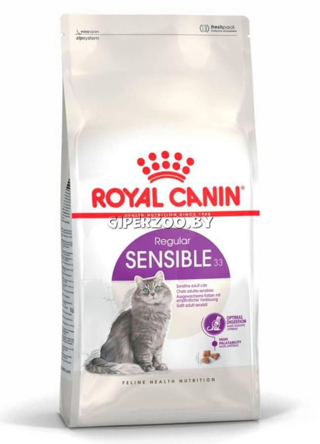 Пищеварительная система некоторых кошек чувствительна к определенным типам питания.Если у вашей кошки отмечаются проблемы с пищеварением, то, возможно, потребуется пересмотреть ее рацион. ROYAL CANIN® Sensible 33 разработан для взрослых кошек в возрасте 1–7 лет с чувствительной пищеварительной системой и содержит уникальную комбинацию питательных веществ для обеспечения оптимальной работы пищеварения и пребиотики для поддержания баланса кишечной микрофлоры.
