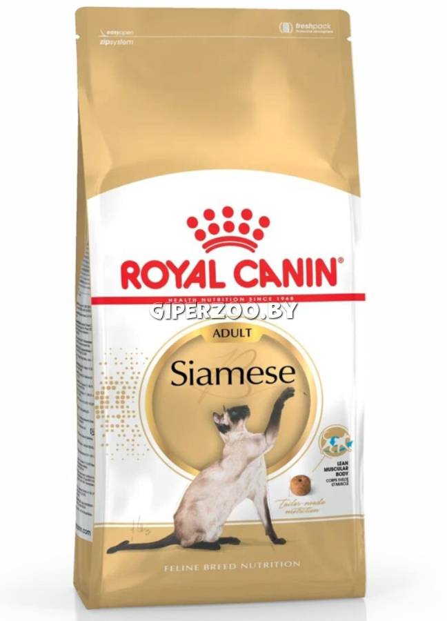 Формула продукта ROYAL CANIN Siamese Adult разработана с учетом особых потребностей сиамских кошек. Siamese Adult содержит все необходимое для здоровья вашего питомца! Корм предназначен для взрослых сиамских кошек старше 12 месяцев. Повышенное содержание белков (38%) и умеренный уровень жиров (16%) позволяют этим животным с удлиненным изящным мускулистым телом поддерживать оптимальную физическую форму. Продукт обогащен L-карнитином, помогающим оптимизировать метаболизм жиров. Специально разработанные крокеты кольцевидной формы прекрасно адаптированы для сиамских кошек с их удлиненными узкими челюстями, обеспечивают удобный захват и стимулируют тщательное разгрызание корма, поддерживая гигиену полости рта. Состав: изолят растительных белков*, дегидратированные белки животного происхождения (птица), пшеница, рис, мука из зерновых культур, животные жиры, гидролизат белков животного происхождения (вкусоароматические добавки), растительная клетчатка, минеральные вещества, рыбий жир, дрожжи.