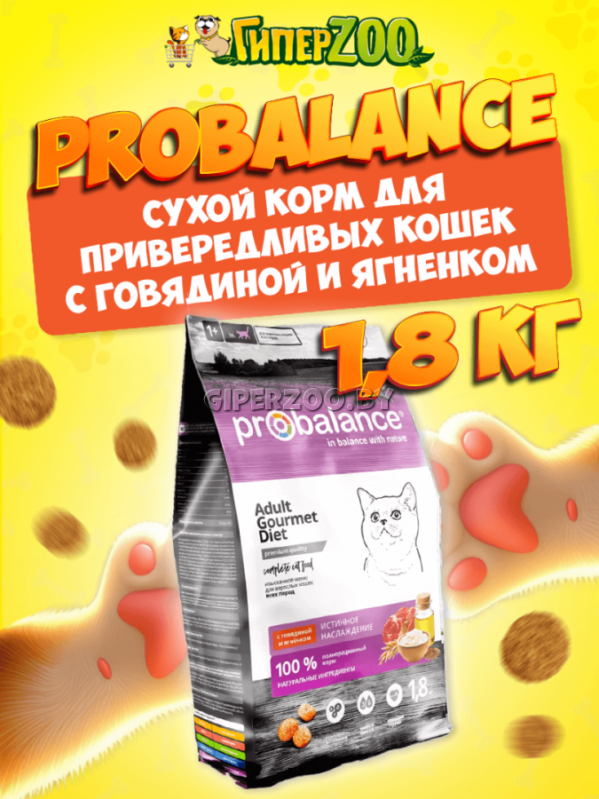 Probalance Gourmet diet Adult Cat (говядина, ягненок), 1,8 кг