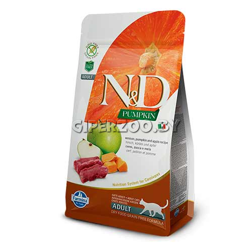 Farmina N&D GF Pumpkin Cat (Оленина, тыква, яблоко), 0,3 кг - беззерновой корм для взрослых кошек. В состав входит свежая оленина, добавлены тыква, яблоко, а также другие полезные для организма компоненты.