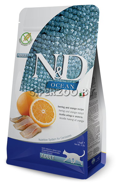 Farmina N&D Ocean Adult Cat (рыба, апельсин), 1,5 кг – полнорационный беззерновой сухой корм для стерилизованных кошек и кастрированных котов.