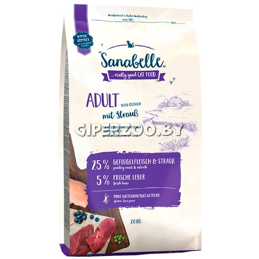 Bosch Sanabelle Adult Ostrich (Страус) - для сбалансированного и здорового питания взрослых кошек всех пород.