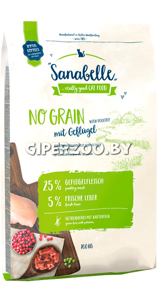 Bosch Sanabelle No Grain (Птица) - для сбалансированного и здорового питания взрослых кошек всех пород с чувствительным пищеварением.