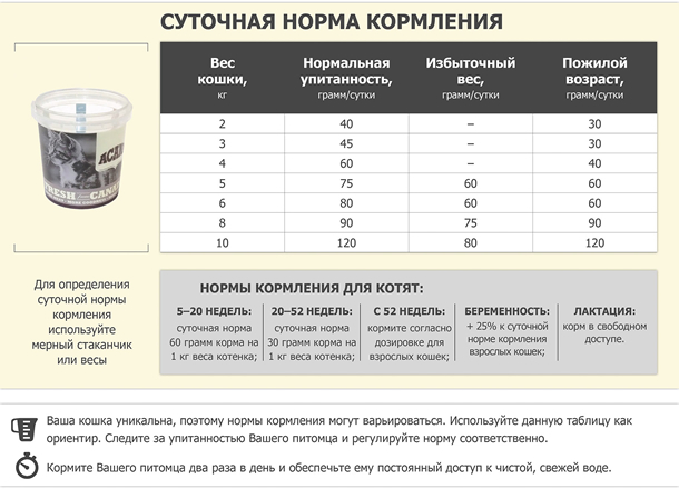 Норма кормления Acana Pacifica Cat