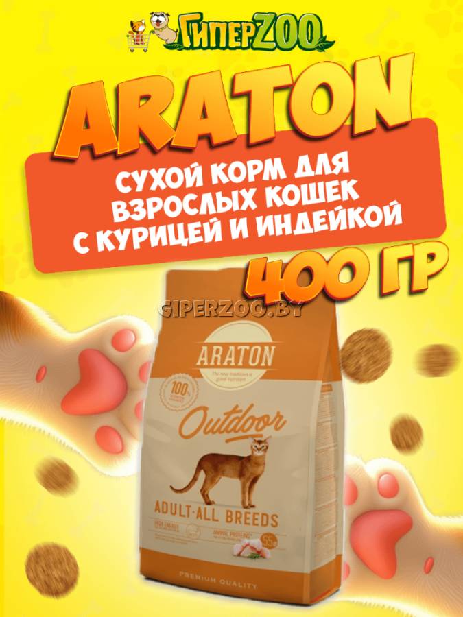 Сухой корм для кошек Araton Cat Chicken&Turkey (курица и индейка) - это сухой корм для взрослых кошек с курицей и мясом индейки.