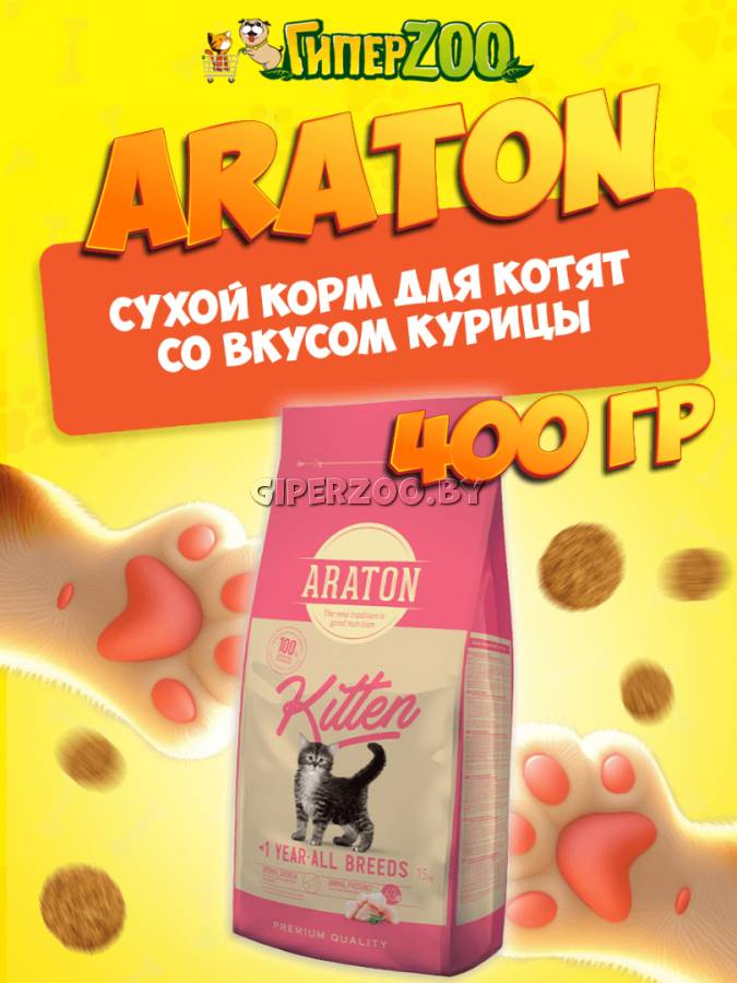 Сухой корм для котят Araton Kitten (Аратон Киттен) курица, 0,4 кг - полноценный корм для котят.