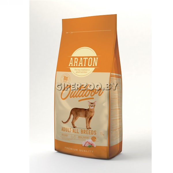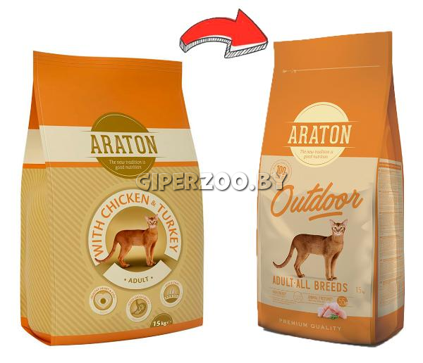 Сухой корм для кошек Araton Adult Outdoor (курица и индейка), 15 кг - сухой полноценный корм для взрослых кошек, живущих на открытом воздухе. С курятиной и индюшатиной.
