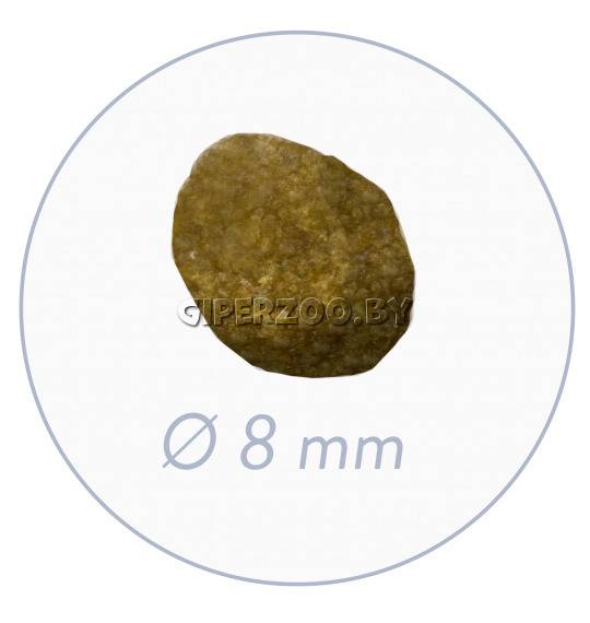 Состав: cвежее куриное мясо (20 %), ячмень, кукуруза, белок птицы (сушеный), кукурузный белок, животный жир, свежая форель (5 %), гидролизат белка, семена льна, карбонат кальция, рис, печеночная мука, лососевый жир (0,5 %), горох (сушеный, 0,4 %), хлорид калия, брусника (сушеная, 0,1 %), черника (сушеная, 0,1 %), сушеная петрушка (0,1 %), дрожжи (сушеные, 0,1 %), цветки бархатцев (сушеные, 0,05 %).