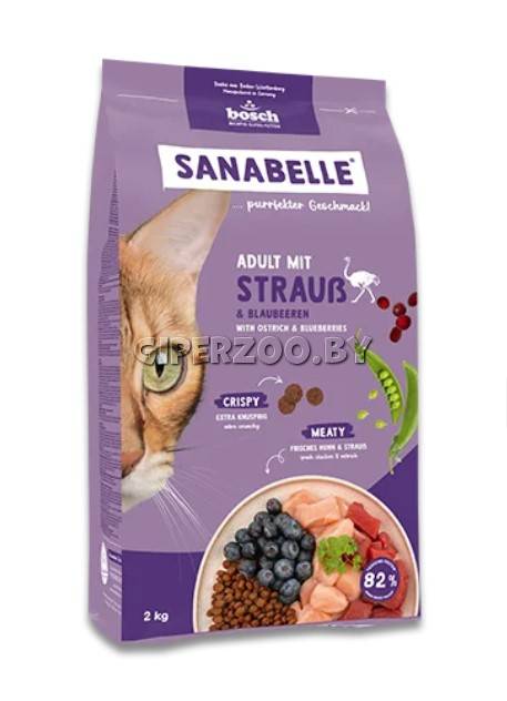Bosch Sanabelle Adult Ostrich (Страус), 8 кг — для сбалансированного и здорового питания взрослых кошек всех пород.