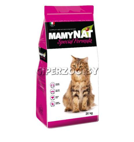 MamyNat Cat Adult (курица, индейка), 20 кг — это сухой корм для взрослых кошек с курицей и индейкой.