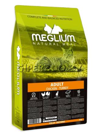 Meglium Cat Adult (Курица и индейка) — это полноценный корм для взрослых привередливых кошек с курицей и индейкой.