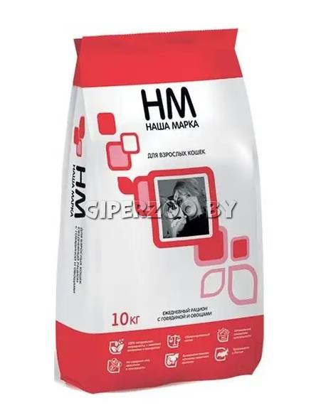 Корм Наша Марка (говядина, овощи), 10 кг - это полноценный сухой корм премиум класса для взрослых кошек с говядиной и овощами.