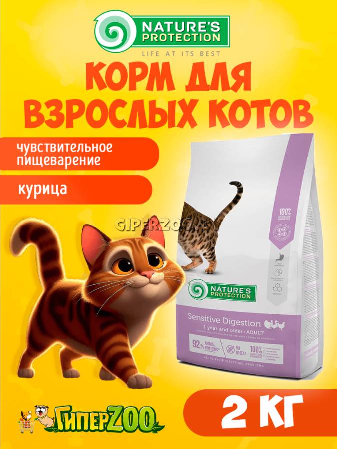 Сухой корм для кошек Natures Protection Sensitive Digestion (Натур Протекшн Сенситив Диджестион), курица, 2 кг - это полнорационный и сбалансированный корм для кошек с очень чувствительной пищеварительной системой.