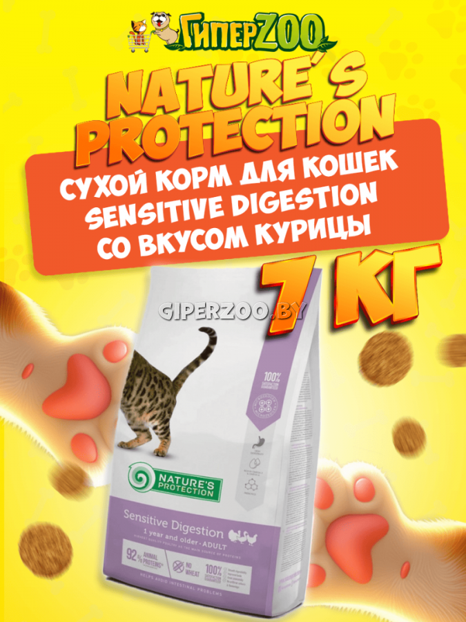 Сухой корм для кошек Natures Protection Sensitive Digestion (Натур Протекшн Сенситив Диджестион), курица, 7 кг - это полнорационный и сбалансированный корм для кошек с очень чувствительной пищеварительной системой.