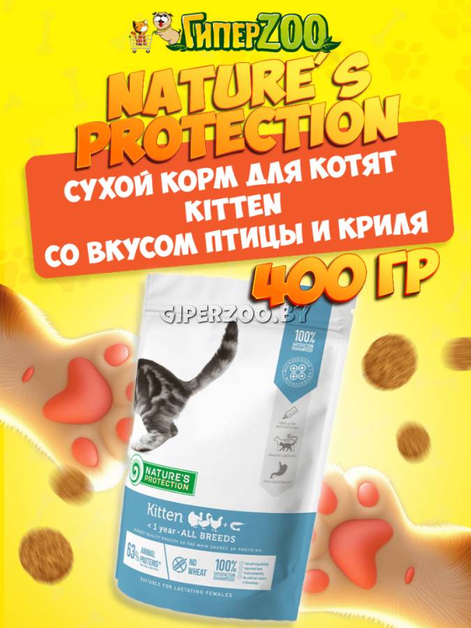 Сухой корм для котят Nature's Protection Kitten (Натур Протекшн Киттен), птица и криль, 400 гр - это полноценный корм для котят до 1 года.