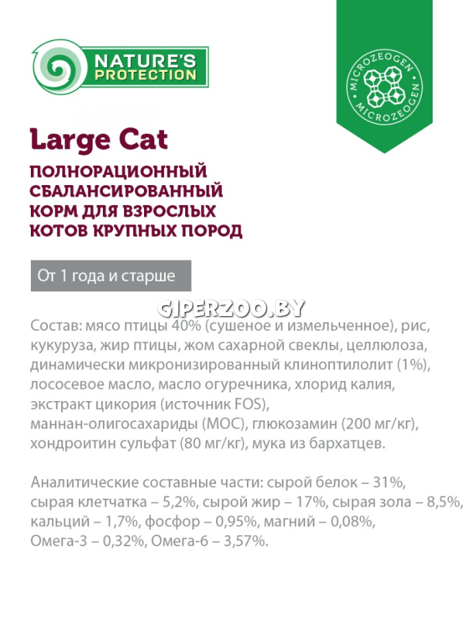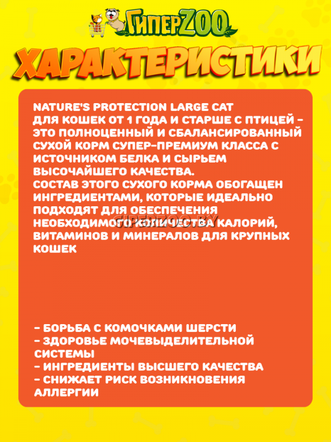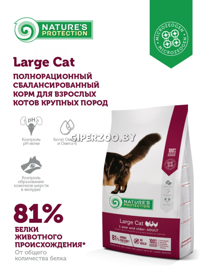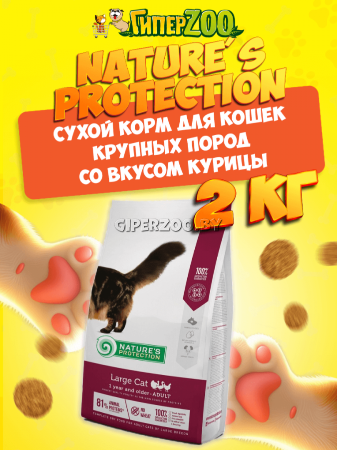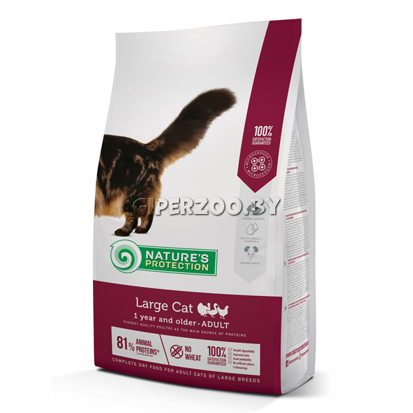 Nature’s Protection Large Cat Poultry — идеальный выбор для владельцев кошек крупных пород, которые хотят обеспечить своим питомцам . Корм поддерживает мышечную массу, здоровье суставов и общее самочувствие.