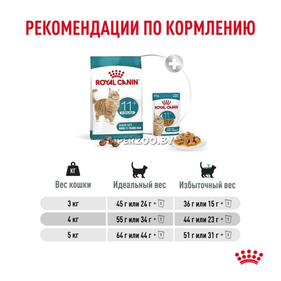 Разработанный специально для пожилых кошек и протестированный с их участием, ROYAL CANIN® Ageing 11+ Sterilised обладает легкой для поедания текстурой, обеспечивающей вашему питомцу положительный кормовой опыт.