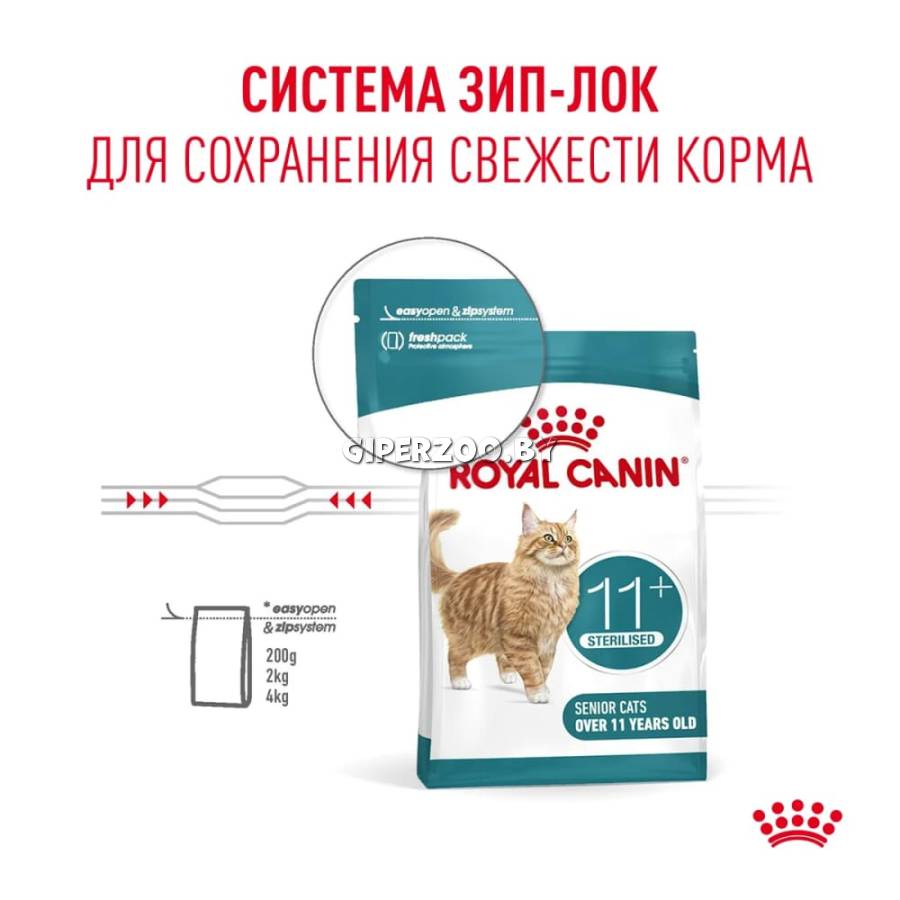 Royal Canin Ageing Sterilized Cat 11+, 2 кг – сухой корм для стерилизованных или кастрированных кошек в возрасте 11 лет и старше.