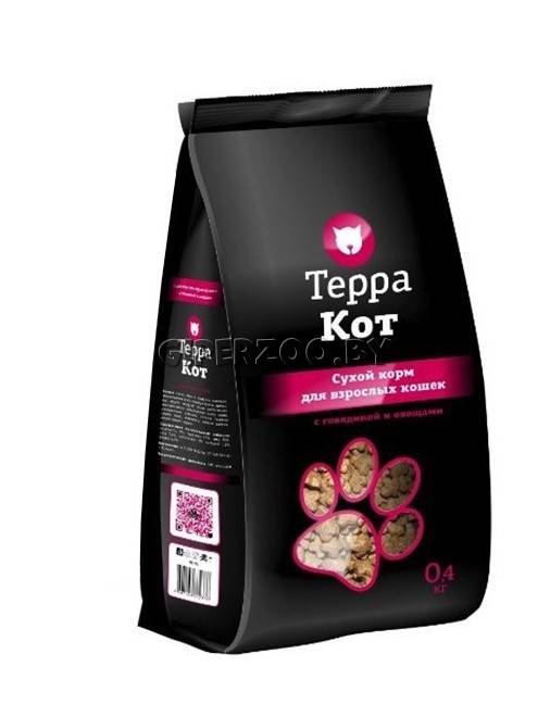 Терра Кот корм для кошек с говядиной и овощами, 400гр - это полнорационный сухой корм для взрослых кошек с говядиной и овощами.