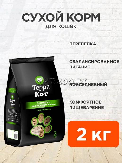 Терра Кот корм для кошек с перепелками, 2кг - это полноценный консервированный рацион с перепелками и овощами в нежном соусе для взрослых кошек.