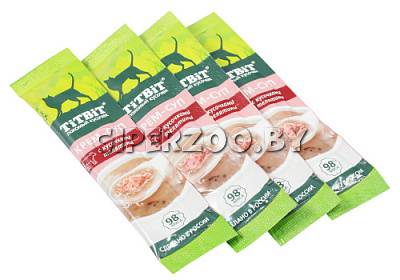 Состав: телятина, мясной бульон, морковь, петрушка, таурин, желеобразователь, вода.