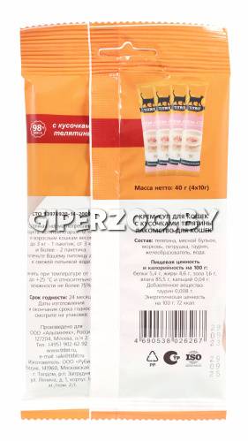 ТИТБИТ Крем-суп для кошек с кусочками телятины, 10 гр*4 шт – это вкусный и полезный продукт для вашего питомца, созданный с заботой о его здоровье. Каждая порция содержит нежные кусочки свежей телятины, что делает корм особенно аппетитным и питательным.