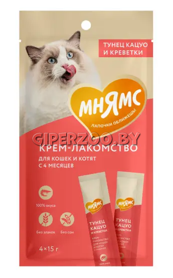 Мнямс Крем-лакомство для кошек с тунцом и креветками, 4*15 гр