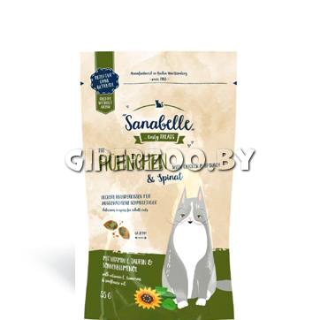 Лакомство Sanabelle Crispies with Chicken & Spinach содержит большое количество белка животного происхождения и великолепно подходит как дополнительное питание или поощрение кошек. Лакомство насыщено питательными веществами и минералами, позволяет кошкам получать дополнительную энергию и питательные вещества. Особый состав лакомства благоприятно влияет на шерсть и кожу кошки. Благодаря оптимальной структуре и высокому содержанию мясных компонентов, обладает великолепными вкусовыми качествами.
