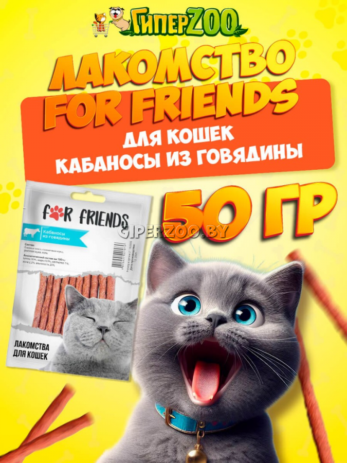 Лакомство для кошек «For Friends» Кабаносы изговядины- это натуральное лакомство, которое подойдет для любой породы кошек старше 3-х месяцев. Содержит питательные вещестра и витамины. Разработан с учетом полноценного рациона кошек.