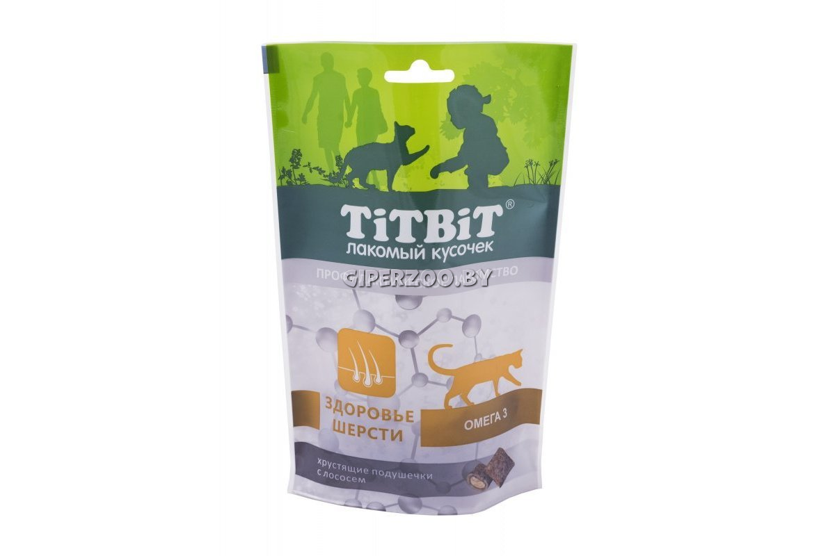 Профилактические лакомства для кошек TiTBiT - специально разработанные полезные угощения для поддержания здоровья животного. Хрустящие подушечки для кошек с лососем для здоровья шерсти, содержат в составе Омега 3 жирные кислоты и витамины, которые стимулируют рост и блеск шерсти, способствуют быстрому восстановлению животного после линьки.