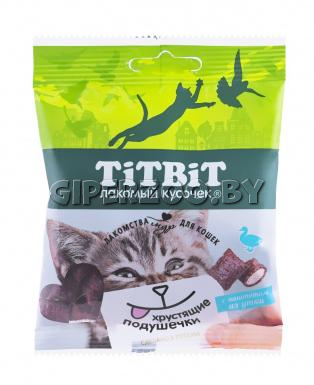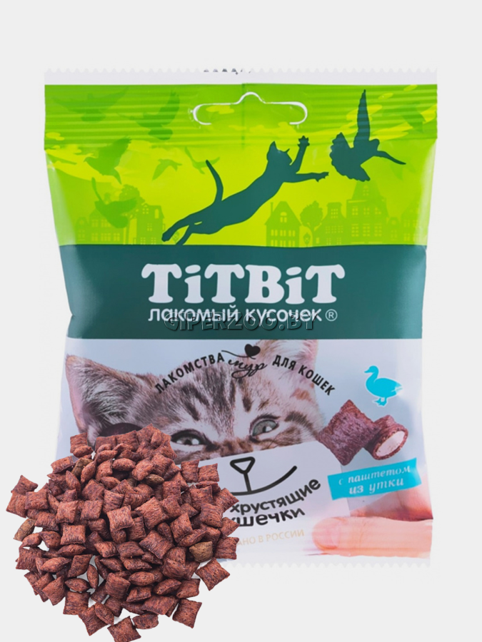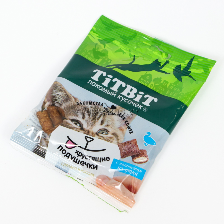 ТИТБИТ Хрустящие подушечки для кошек с паштетом из утки - это вкусное и полезное лакомство. Паштет содержащийся внутри каждой подушечки имеет мягкую однородную консистенцию в виде мусса и неповторимый нежный вкус.