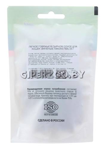 Состав: легкое говяжье, коллаген говяжий, растительные масла, сырный соус, аминокислотный комплекс.